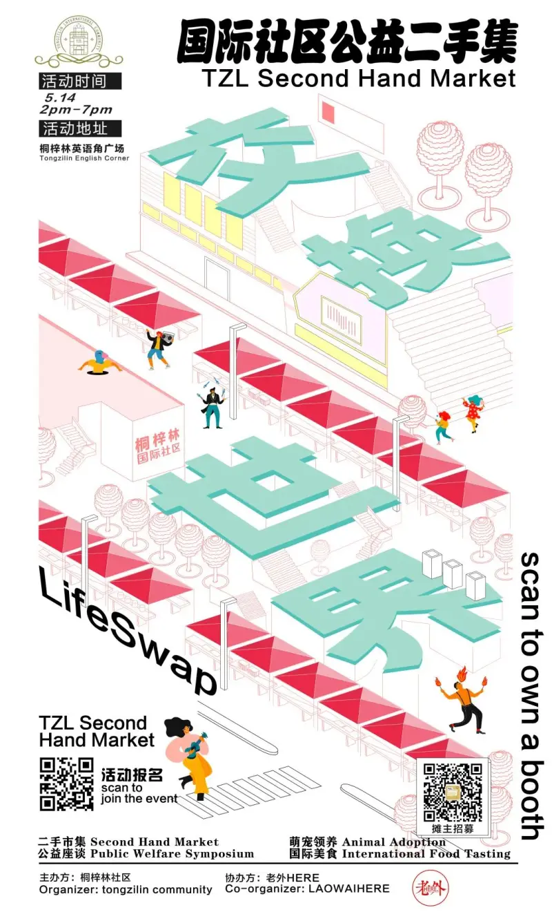 作为一家深耕乡村的公益机构,海惠一直很看重公益理念的传播及公众参与,希望能让更多人了解“农人”和乡村的日常。这一次我们也很开心能受到桐梓林社区的邀请,参与其“交换”世界-国际社区里的二手市集活动~