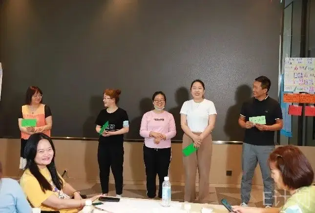 得益于培训师营造的安全学习氛围,职业培训学校的任教老师们在就“青年就业”话题进行练习发散环节中,成功运用“工具箱收集”、“三明治反馈”等核心方法,进行了观点探讨和归类。