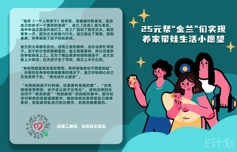 这是独抚母亲项目第一次上线公募平台,如果您认可我们的项目,欢迎在9月7、8、9日三天内扫描以下二维码,支持独抚母亲项目,帮助我们争取更多的腾讯配捐~