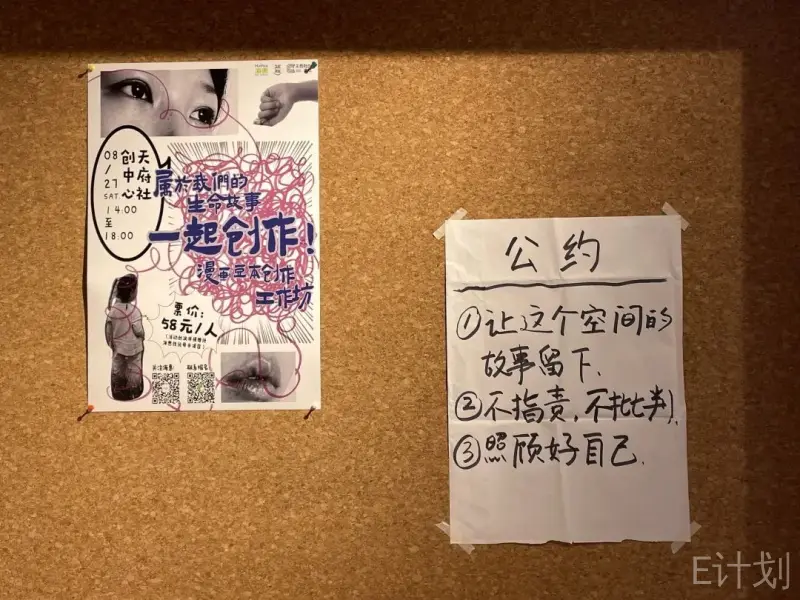 现场加上我一共是9名女性参与,但每个人看起来都很不一样。我一进场就有小伙伴很热情地和我打招呼。墙上贴着公约,第三条是照顾好自己。