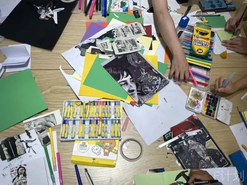 我们花了一个半小时的时间制作自己的豆本。语言停止,转移到肢体和纸张上面,书本被摊开,纸⻚被撕开,笔盒里的顺序被重新排列,图像,文字,字母被解构,桌子上制造着灵感的废墟。