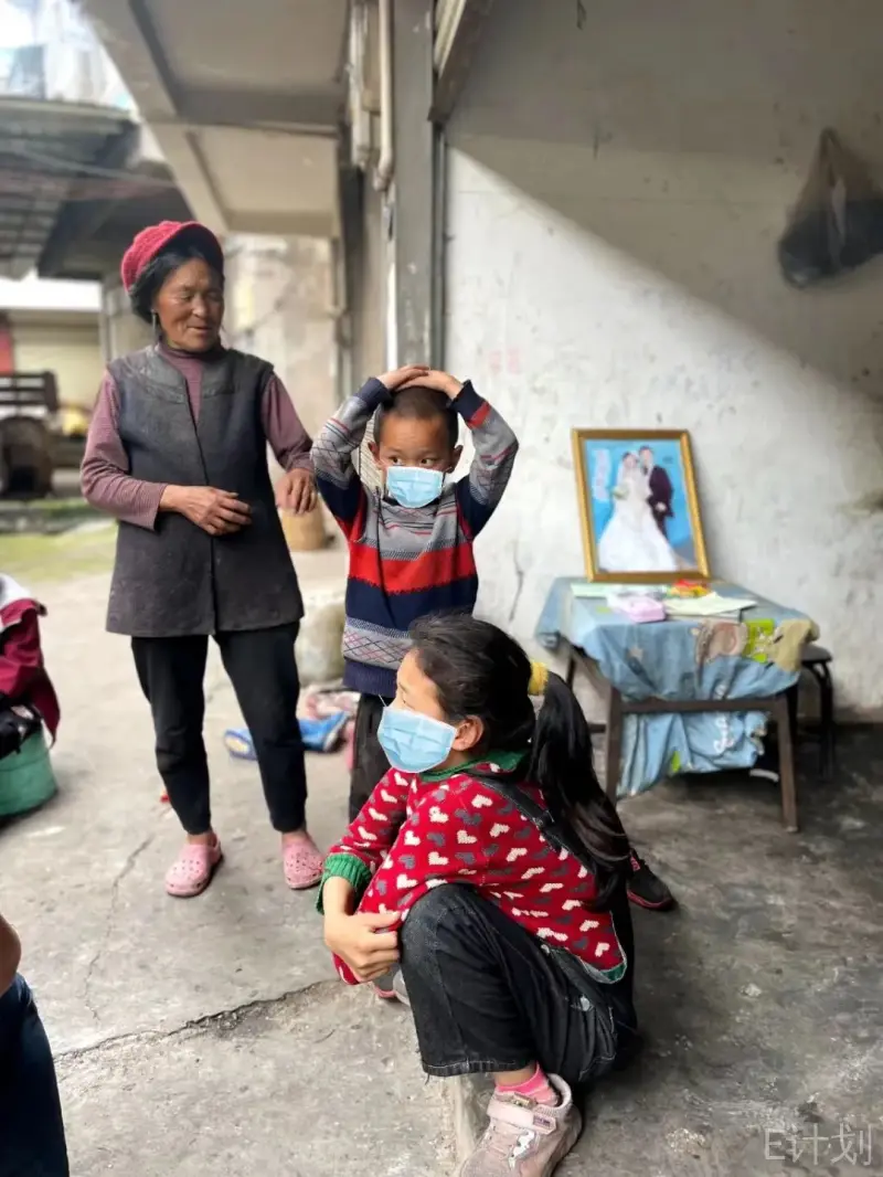 初见小叶时,小叶怯生生地躲在奶奶身后,小叶的妈妈在他6个月的时候就去世了,爸爸在外务工。家里只剩下65岁的奶奶,奶奶不仅要抚养小叶和哥哥,还有小叶的堂姐。三个孩童跟着年迈的奶奶一起生活。