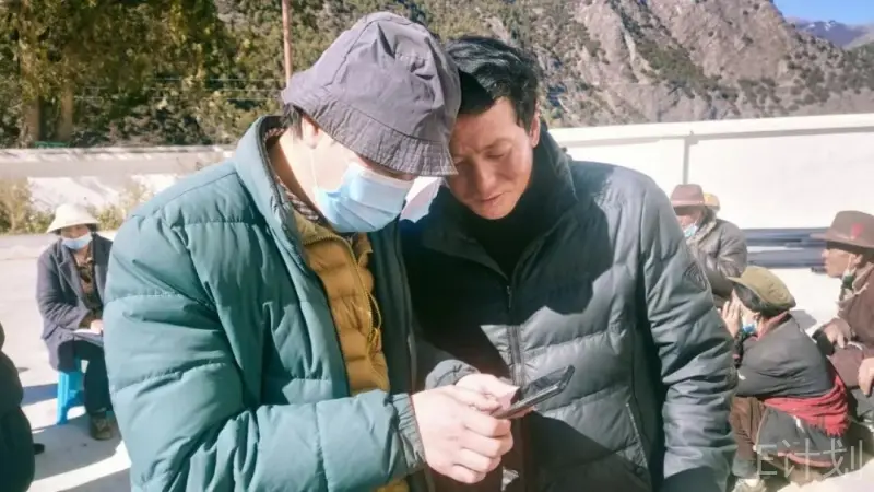 图 | 会后,洛绒益西(左一)主动联系畜牧技术老师,求教如何防治疾病,留了老师联系电话