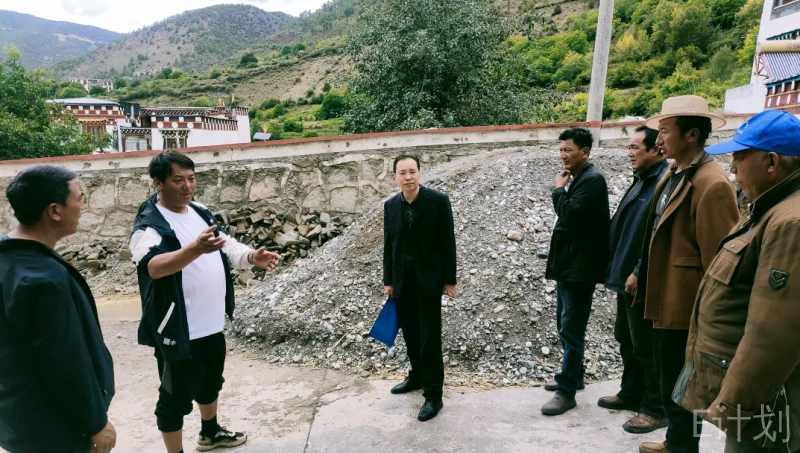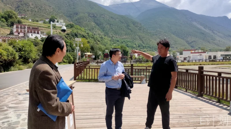 益西支书(右一)向外部技术人员介绍纳木村的资源和发展思路