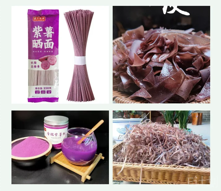 平江县余坪汇民农林农民专业合作社精选优质紫薯,结合传统与创新,打造出紫薯面条、紫薯营养早餐粉、紫薯粉皮、紫薯粉丝等一系列健康美味的产品。