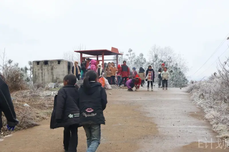 几个小朋友结伴走在结冰的村道上,兜里揣着几个大土豆。他们正要前往儿童之家,在那里与志愿者老师和其它小伙伴见面。