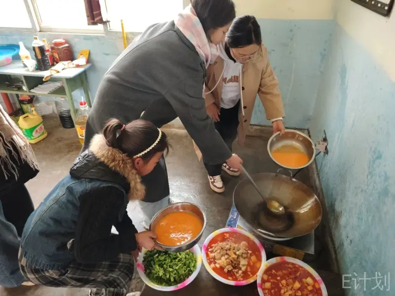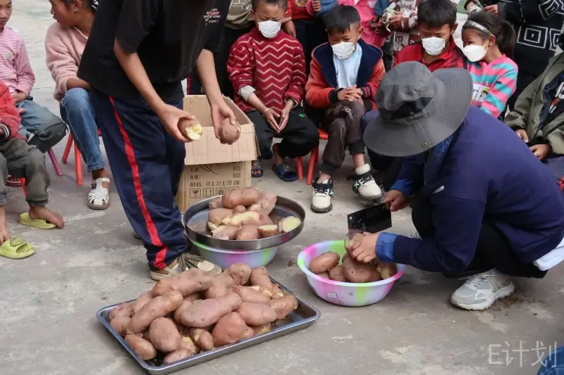 到了饭点,孩子们在志愿者老师的帮助下开火做饭,把带来的土豆煮熟,跟大家一起分享。