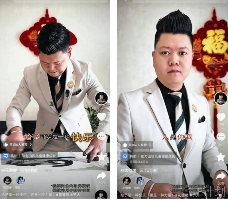 “个人能力是有限的。”“通过短视频的形式,可以呼吁更多人去做。”他用亲身实践告诉我们,借助抖音平台的流量,做公益可以“事半功倍”。