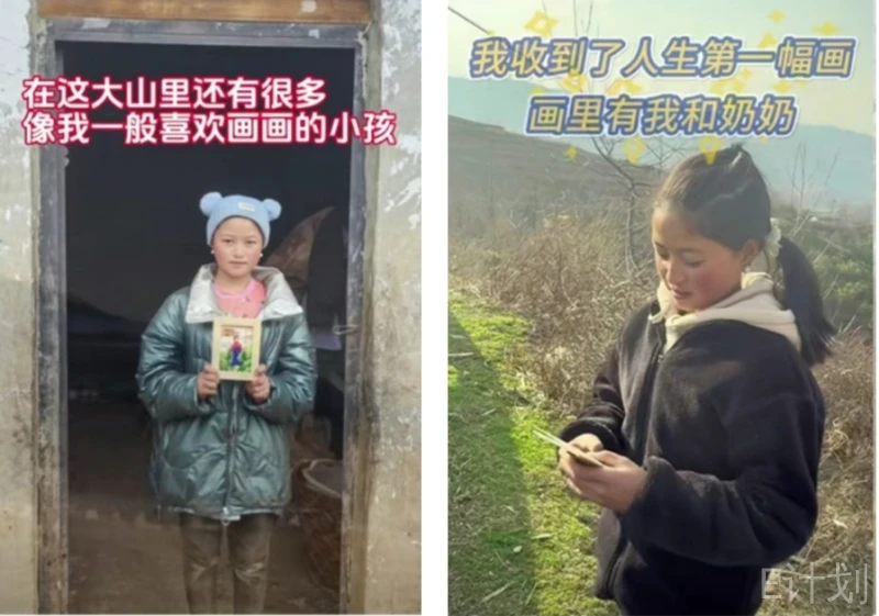 项目人员把这幅画带去了大凉山,带给了照片里的小女孩儿。隔着千万里,她们完成了这一次美丽的邂逅。
