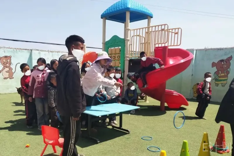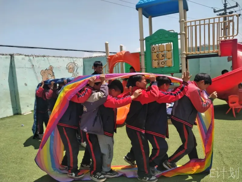 在有人套圈时,其他孩子就在旁加油助威;在进行彩虹接力时,大家就默契配合,顺利完成挑战。