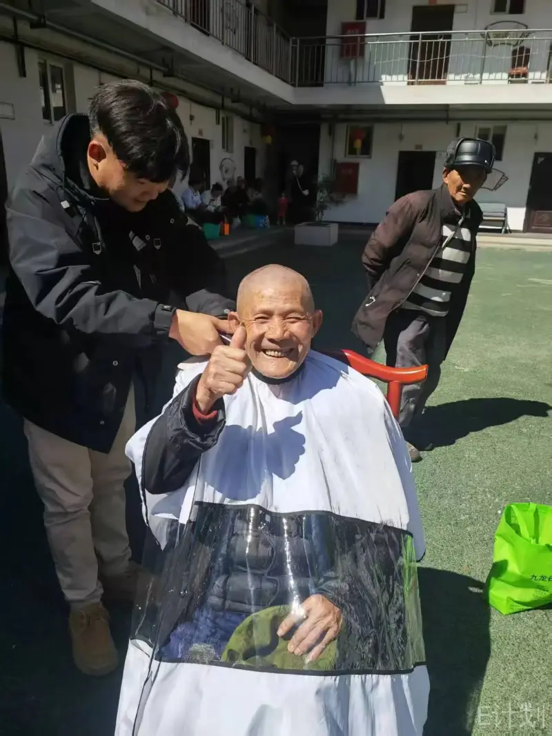 志愿者们分工协作:有的为老人理发,有的为老人测量血压,有的陪老人拉家常……在切实的关怀和琐碎的闲谈间,心与心的距离一点点被拉近。