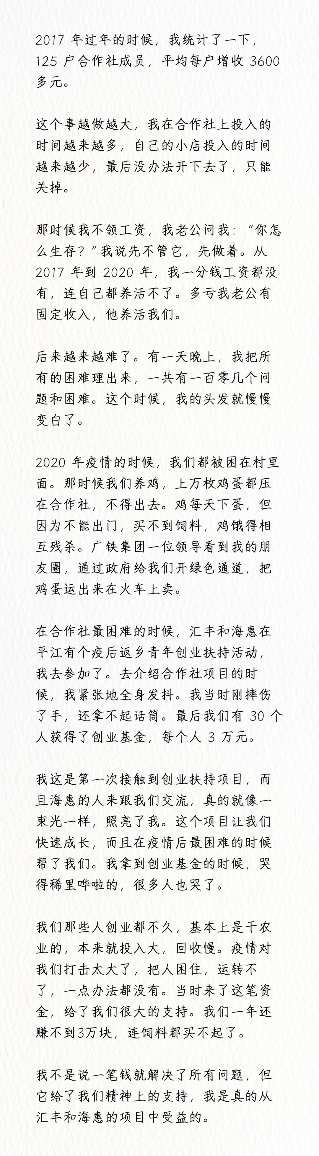 她从一个民间志愿者,走向了产业的组织者。她个人的善意,升华为一个良性运转、利益于更多人的合作社系统。