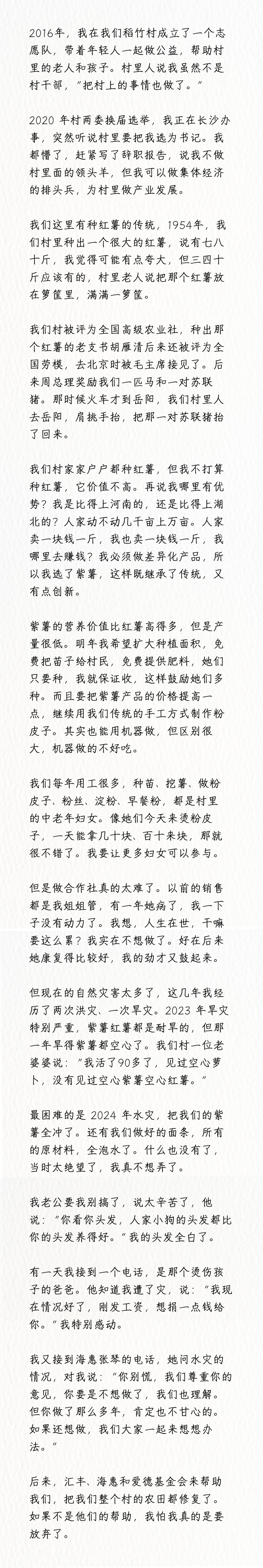 “从未忘记来时路,但第一次觉得脚下的泥土如此厚重。从今天起,更深的根要扎进这片土地了。不敢许诺什么,只愿将这些年对家乡田野的热爱,化作清晨田埂上的露水,真实地滋养着每一寸土地。”