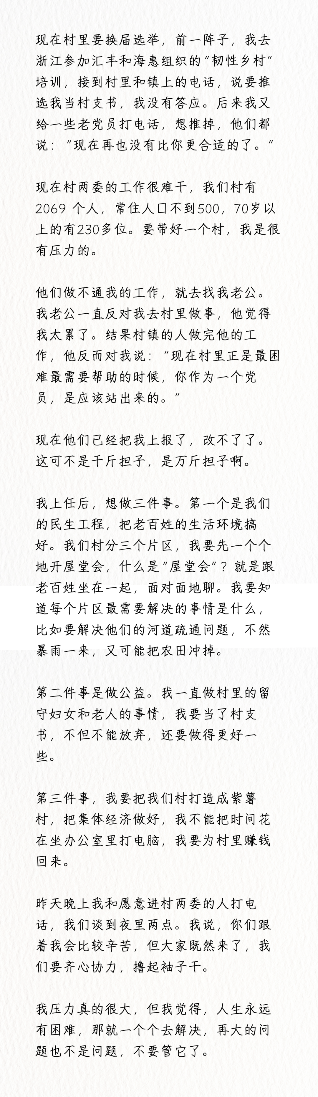 一位农村女性关于