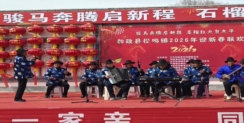 狼土泉村文化广场上,以“骏马奔腾启新程,石榴红火贺太平”为主题的迎新春联欢会热烈开演。活动由狼土泉村主办,周边多个村庄共同参与。活动紧扣民族团结、乡村振兴主题,村民们主动参与筹备、排练和组织,在共同参与中展现出浓厚的主人翁意识。