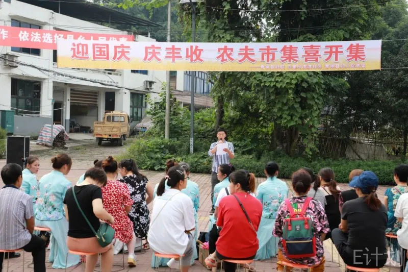 As the fourth Chinese Farmers’ Harvest Festival, September 23, 2021, was also the day for the farmers market in Hudu Community, Baiguo Township, Qingshen County, Meishan City, Sichuan Province. Early in the morning, nearly a hundred people including consumers from Qingshen County and cadres and residents, performers and staff from Hudu Community, gathered in the square in front of the old Loufangxi village Committee, participated in the grand celebration. Loufangxi village was incorporated with two other villages into one named Hudu Community in May of 2020. The celebration was sponsored by Hudu Community of Baiguo Township, organized by the Spring Orange Planting Cooperative of Qingshen County, and co-organized by the Association for the Cooperation and Promotion of Rural Women and Children in Qingshen County.