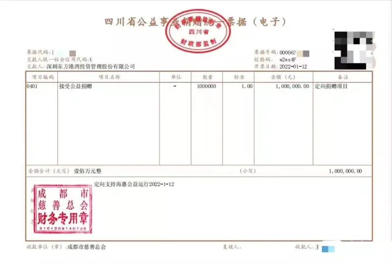 2022年1月12日午时,海惠成都办公室沸腾了,大家都在传“深圳东方港湾投资管理股份有限公司捐赠100万,定向支持海惠公益运营”!