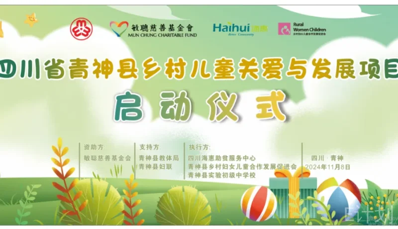 2024年11月8日,由敏聪慈善基金会资助,四川海惠助贫服务中心、青神县乡村妇女儿童合作发展促进会实施的“四川省青神县乡村儿童关爱与发展项目”正式启动。项目内容包括:为40名儿童生活资助、儿童陪伴、家校社协同育人、县域乡村儿童协同教育探索四大板块。与乡村儿童携手同行项目启动仪式上,青神县教育和体育局教育股负责人杨武发表致辞:“作为教育工作者,我一直认为教育是一项综合工程,因为社会的方方面面都会对少